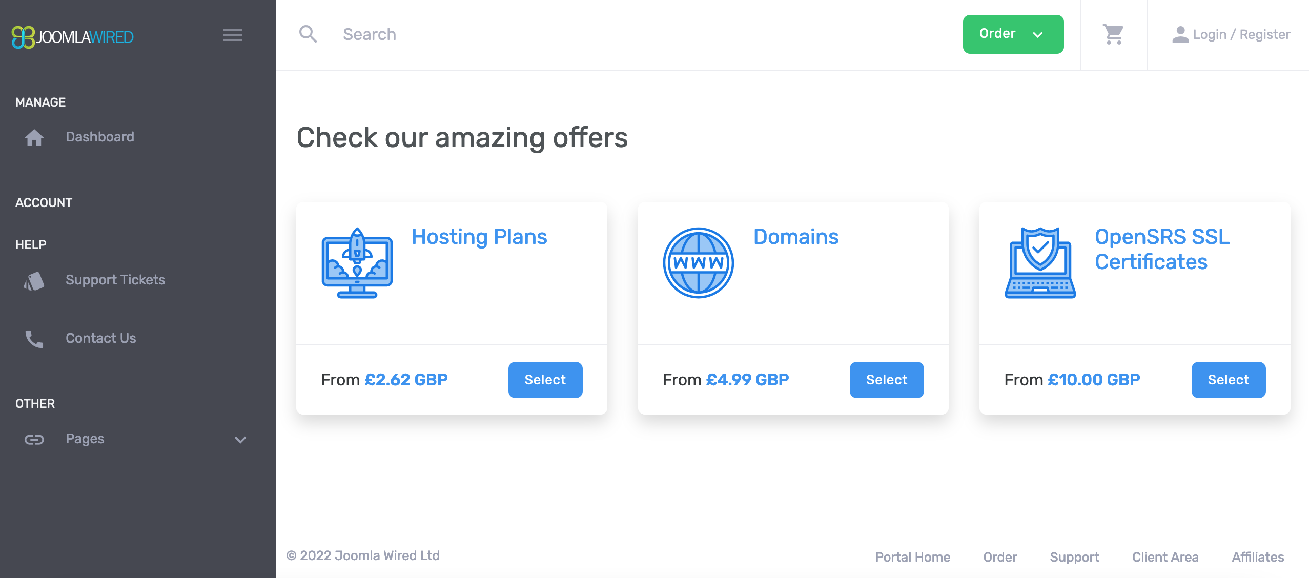 It's so simple to manage all your domains in our sleek client area. We've streamlined making purchases with Joomla Wired, you can upgrade your hosting plan, buy domains and order SSL certificates all in one place. When users submit tickets through our easy ot navigate support ticket area, they are welcomed with quick and precise responses from our team.