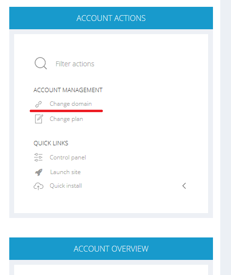 Navigate to the Account Actions section and select Change domain.